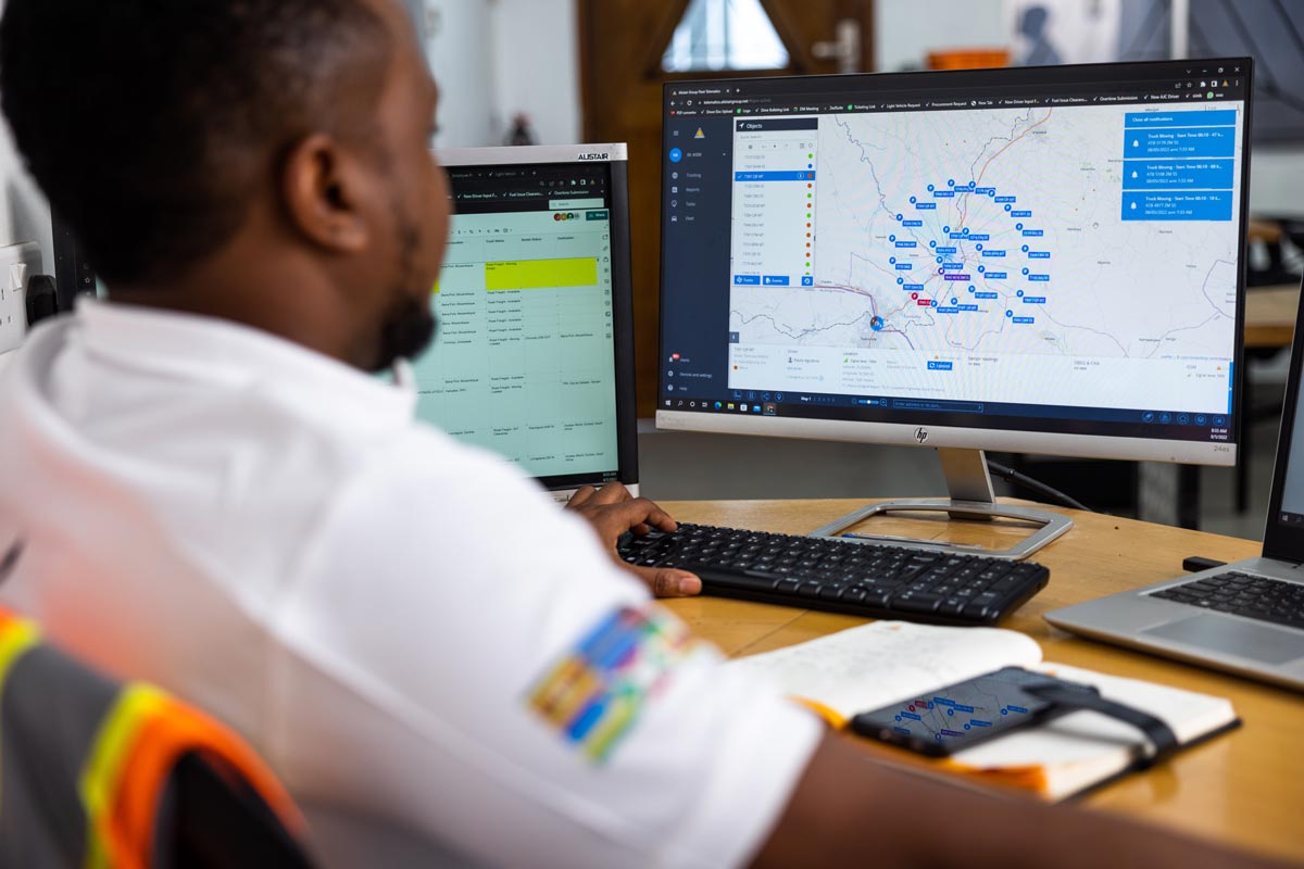 The Alistair Group’s Track and Trace system is a modern, fully web-based platform with real-time status and location information of goods, personnel, and vehicles. This information is available to each client. Each vehicle is equipped with either a single or dual-SIM GPS tracking unit (depending on region/corridor). This allows for the tracking of every Alistair Group vehicle in any country throughout Sub-Saharan Africa. In the unlikely event that both hard-wired/magnetic GPS units and the driver’s phone GPS fail the vehicle will still be manually tracked and location updated by the Alistair Group human tracking team. Our team carries out these updates a minimum of four times a day, using phone/radio updates.
