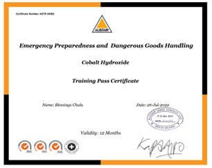 We have a training curriculum for drivers that covers a wide range of how to handle specialized cargoes such as Sodium Cyanide, Hydrogen Peroxide, Hydrochloric Acid, Activated carbon, Emulsion, Explosives, Cobalt Hydroxide, Radioactive Material, Sodium hydroxide, sodium metabisulphite, granular sulphur, sulphuric acid, Lithium manganese dioxide batteries, ammonium nitrate.